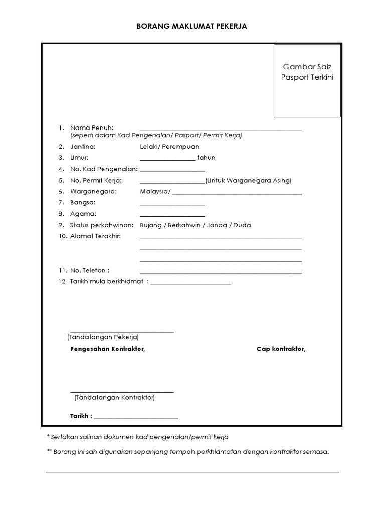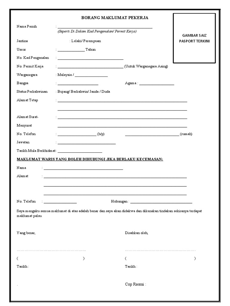 Contoh Borang Maklumat Pekerja Word Fill Online Printable Fillable Blank Pdffiller