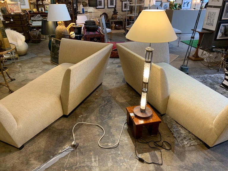 Two Sculptural Donghia Sofas By Joe D Urso With Ecru Chenille Upholstery At 1stdibs